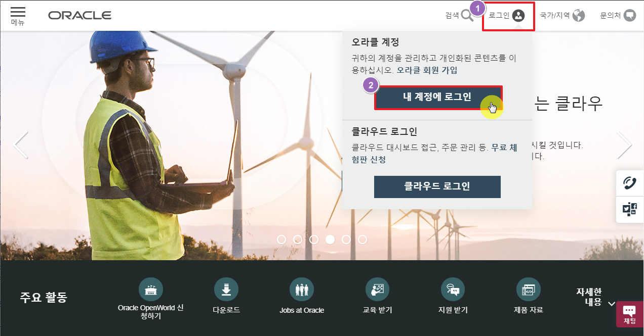 상단의 오라클 홈페이지 링크를 통해서 바로갈 수 있습니다.