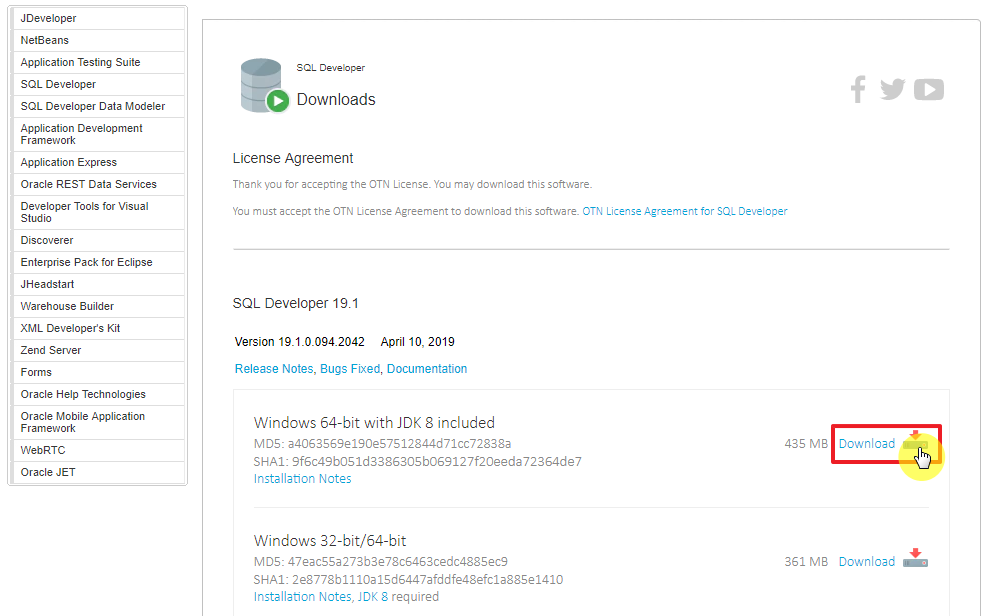 SQL Developer에 대한 라이센스 동의가 필요하기 때문에