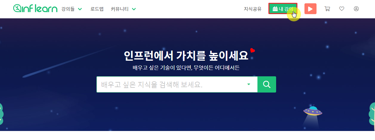강의를 나중에 보고 싶다면 언제든지 우측 상단의 내 강의 버튼을 클릭하면 됩니다.