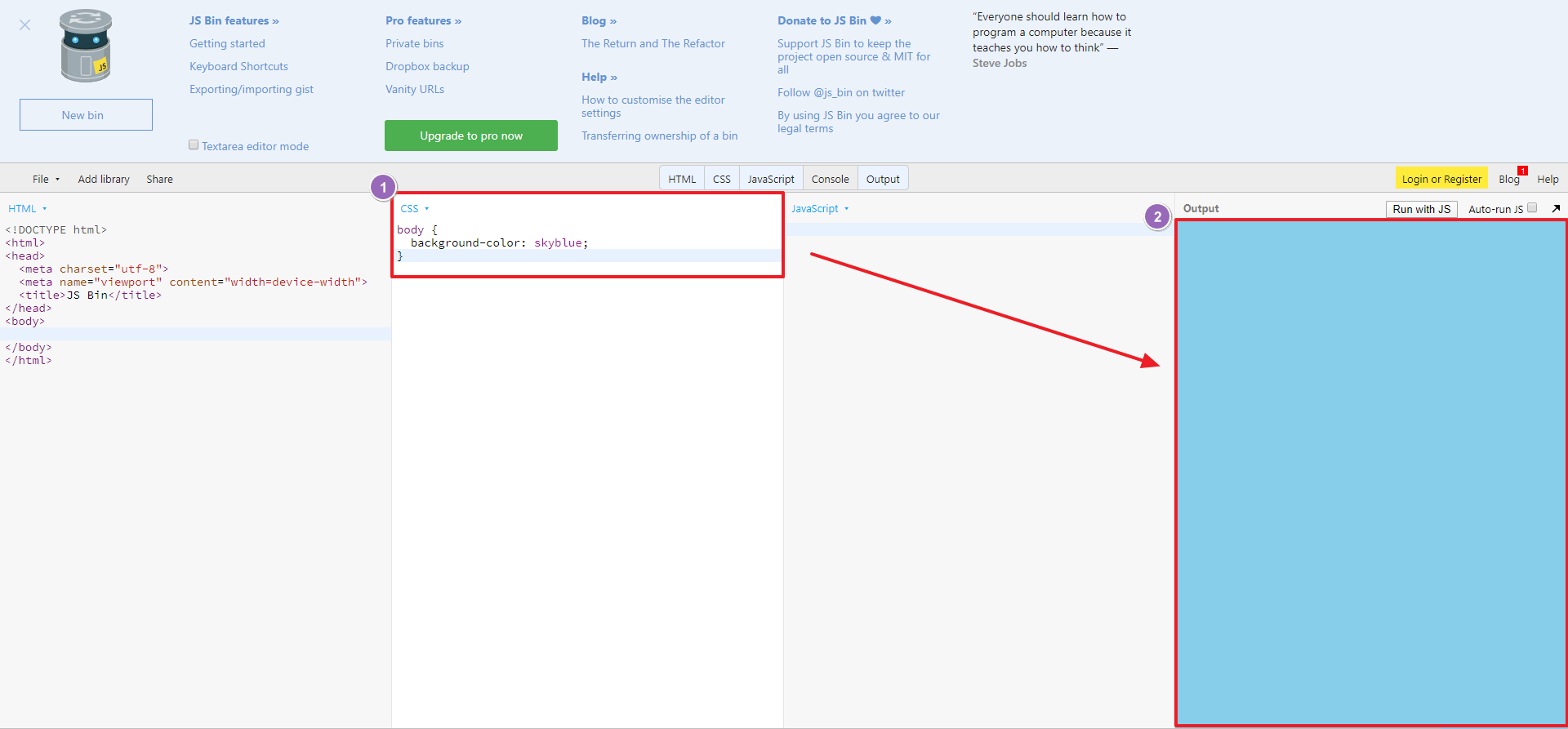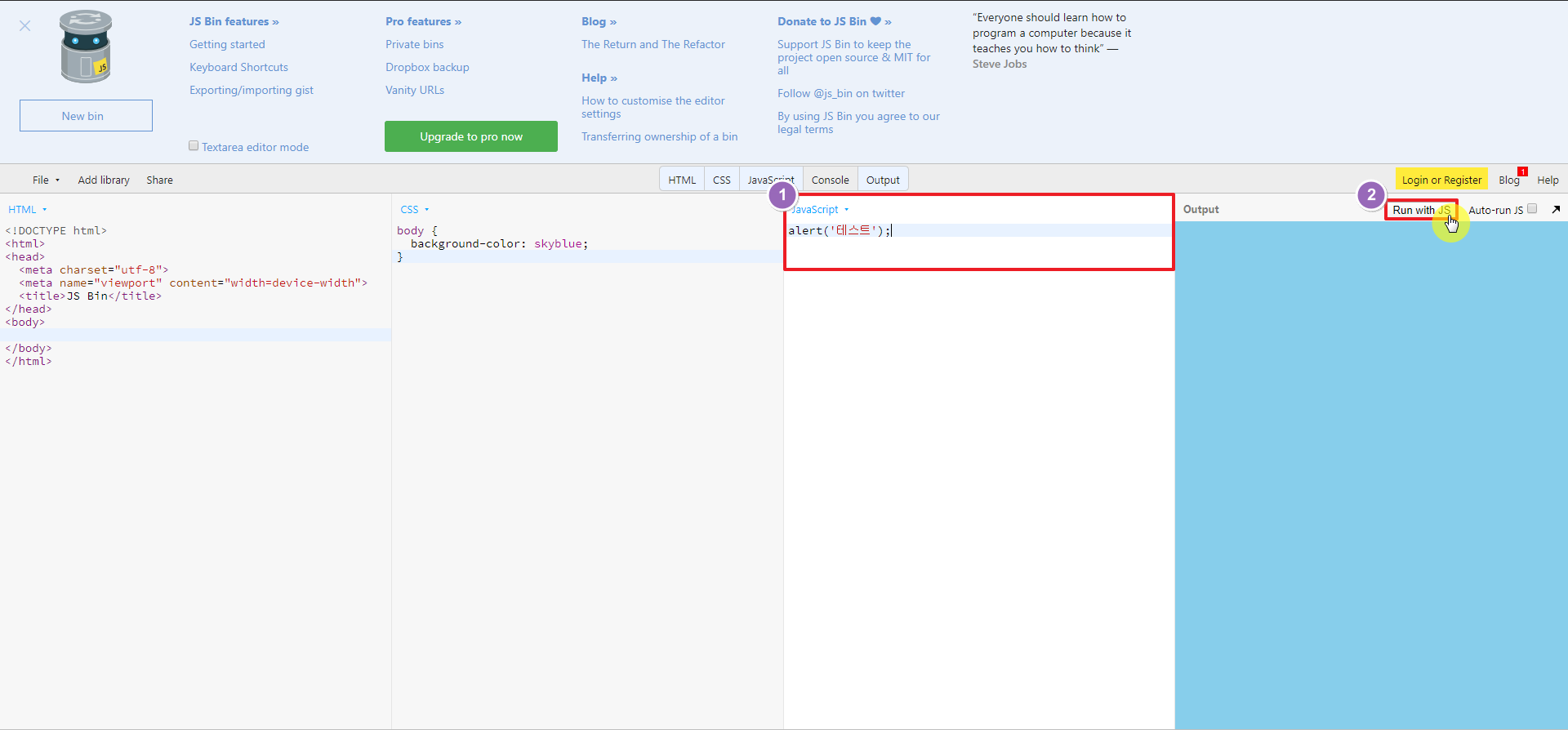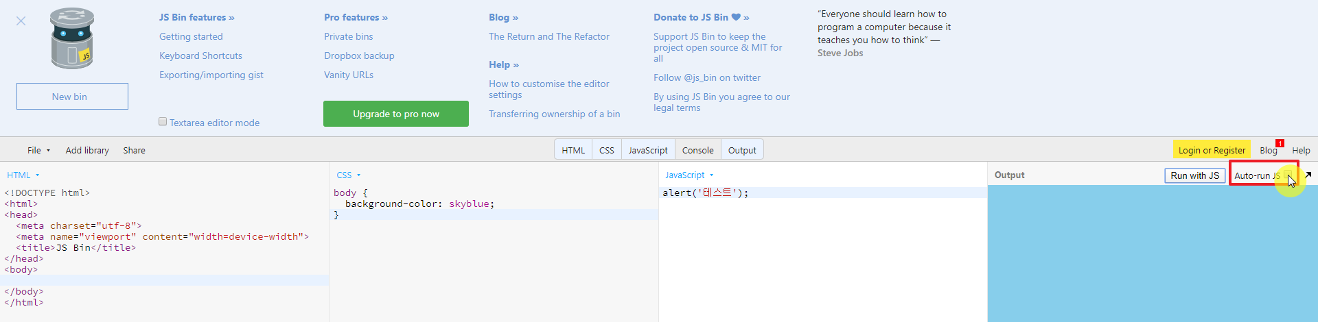 Jsbin이라는 사이트이며 상단의 링크로 바로 이동가능합니다.