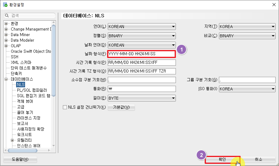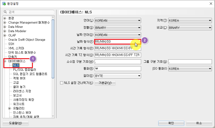 SQLDeveloper를 기본으로 설치하고 변경하지 않았다면 Date Format은