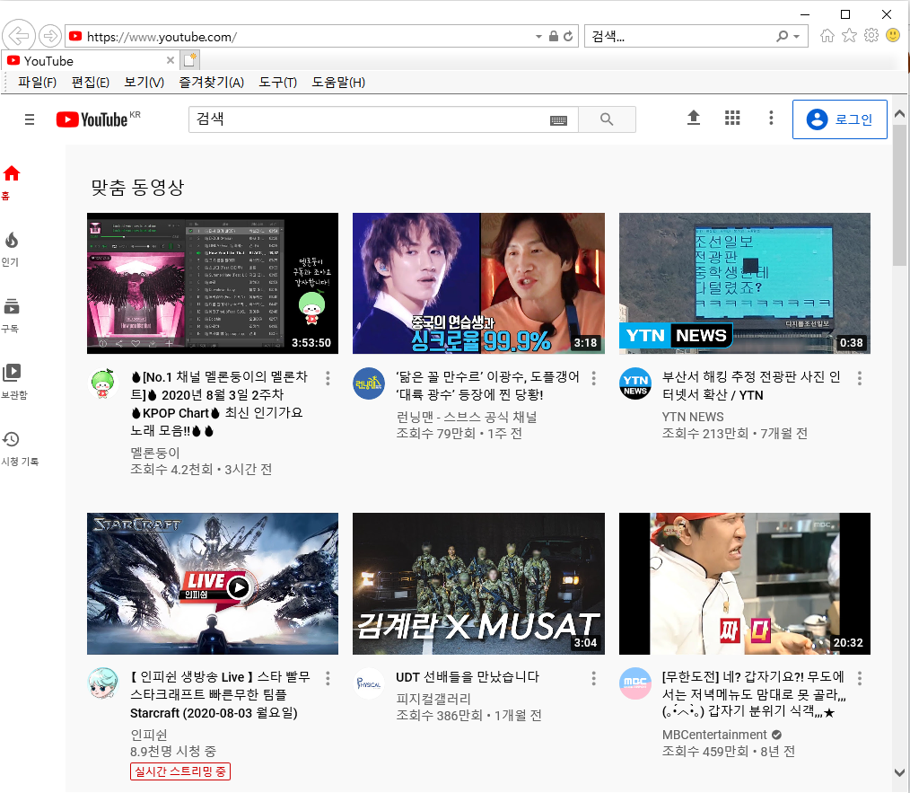 인터넷 익스플로러를 열어서 유튜브 페이지를 접속합니다.