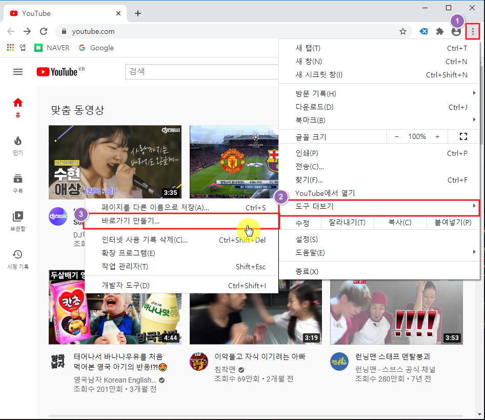 구글 크롬 유튜브 바로가기 생성 방법
