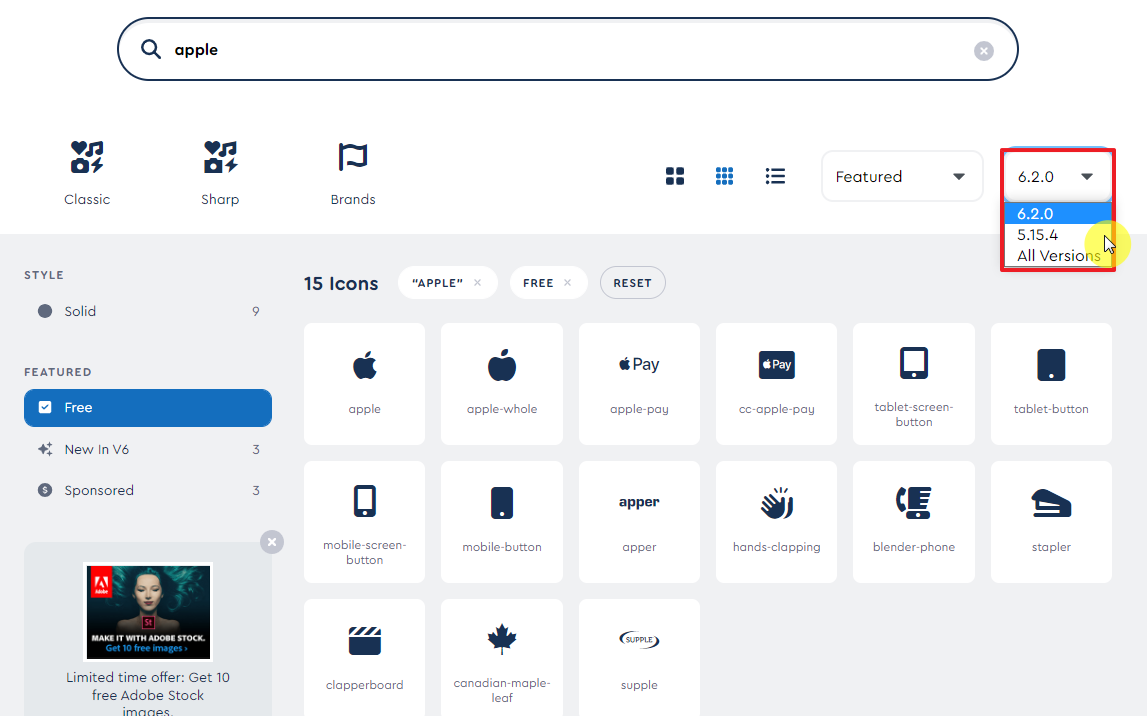 검색 결과 중 무료인 아이콘만 검색하도록 합니다.